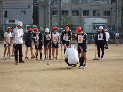 11月24日(火)5,6時間目に地域の方と「ふれあいゲートボール」をしました。