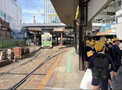 今から路面電車にのり、平和記念公園へ向かいます!