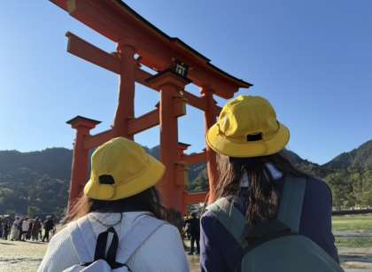 幸運なことに潮が引いて大鳥居の真下まで歩いて行くことができました!