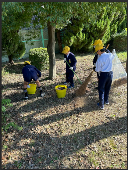 4・5・6年生で南公園の清掃を行いました。普段遊んでいる公園をみんなで掃除するということで、やる気まんまんで活動をしていました。約20分の掃除でビニール袋10袋の落ち葉やゴミが集まりました!