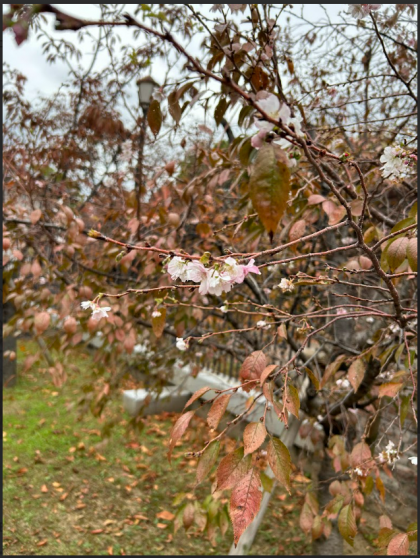 造幣局の外には秋に咲く桜があり、子どもたちは驚いていました。