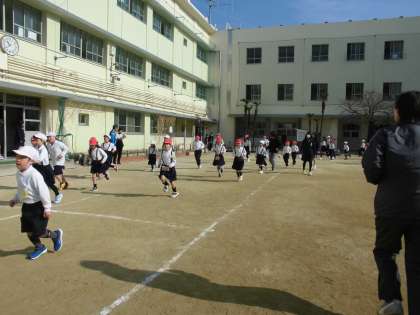 1年生でも止まる子がおらず、走り続けることができました。6年生の走るスピードが速く、下級生が刺激を受けて張り切って走る子が多かったです。