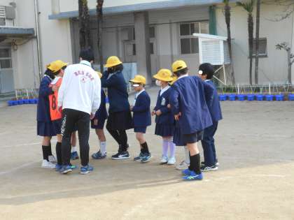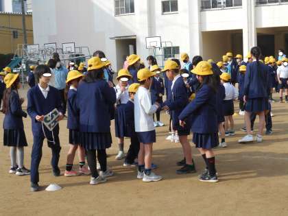 今日の児童集会は運動場で「整列ゲーム」をしました。