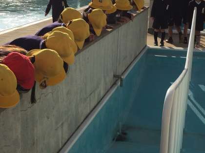 登校した子ども達は、いつも使っている水道の蛇口の下にできたつららとその下にできた氷柱を見て目を丸くしていました。児童朝会が終わった後、池にはった氷を見に行きました。それから、水線引きのやかんの中にあった雑巾が水と一緒に凍っているのを見て、びっくりしていました。その後、屋上のプールへ上がり、凍っている水面を見たり、さわったりと、手が痛くなるのもお構いなしで夢中になって遊んでいました。