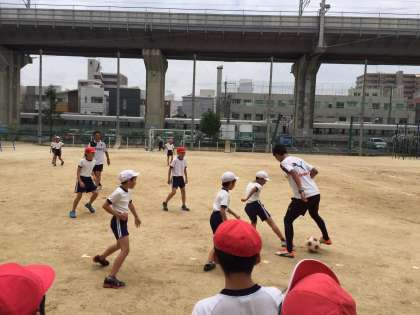 セレッソ大阪のコーチの方々をお招きして、みんなでサッカーに親しみました。各学年1時間ずつという短い時間ではありましたが、簡単な練習から試合までを経験させて頂き、子ども達も楽しんでいたようです。