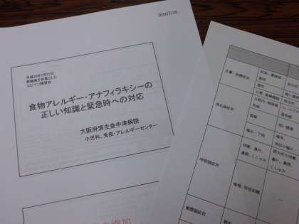 食物アレルギーによるアナフィラキシーショックの重篤度が高い場合に打つアドレナリン自己注射薬(エピペン)について、医師・看護師の方に講義や実技研修をして頂きました。