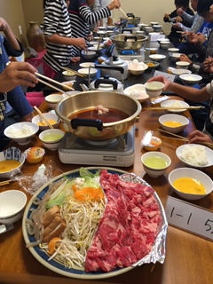 2日目の夕食は、すき焼きです。宿の方からすき焼きのつくり方の説明をしていただき、班で協力して作りました。