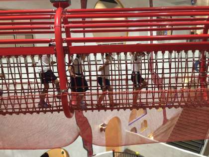 10月6日、2年生は秋の遠足で、キッズプラザ大阪に行きました。午前中は、「こどもの街」を班ごとに自由に行動しました。どきどきしながら網の梯子を渡ったり、わくわくしながら街の中を探検したりしました。「やってみる階」では、外国の衣装や楽器に触れたり、人が入れるくらい大きなシャボン玉で遊んだりして、楽しみながら文化や科学を学ぶことができました。迷子になって、集合場所に来る子もいましたが、班の子と再会できて、また、遊び始めることができました。