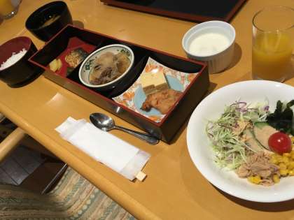 昨日のビュッフェでは食べすぎる人が続出でしたが、朝は和食を中心とした健康的なお食事を頂きます。