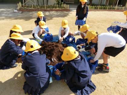 球根を受け取ると、一人一鉢大切に植えていました。また大きなプランターでは、すすんで友だちと協力して植えたり、プランターを運んだりと、支え合いながら取り組む姿が見られました。