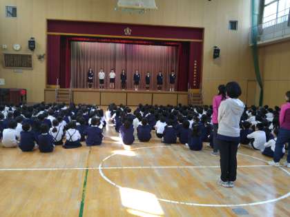 委員会の発表を見たり、たてわり班でゲームをしたりします。