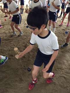 けん玉では、いくつもの難しい技に挑戦しました。集中して取り組み、剣先に玉を何回も入れることができる子どももいました。