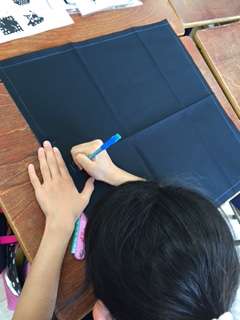 ランチョンマットかお弁当つつみを選んでつくりはじめました。布に印をつけ、ミシンで縫う準備に取りかかりました。布にまっすぐに線を引くことに悪戦苦闘をしている子どももいました。これからの裁縫の学習に黄色信号か!?丁寧に根気強くがんばってほしいと思います。