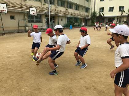 球技クラブは、サッカーに取り組んでいました。