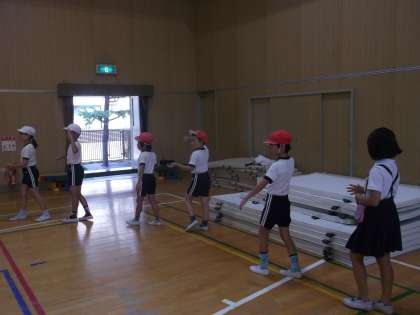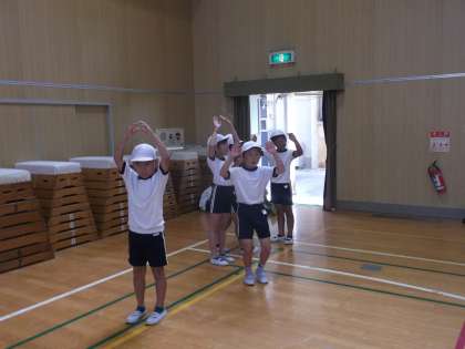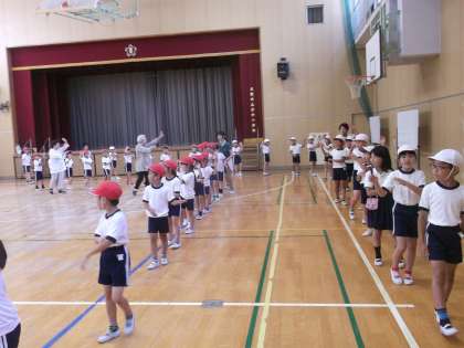 7月19日に一年生と合同で盆踊りの出前授業を受けました。地域の方に来ていただいて盆踊りの踊り方について教えてもらいました。一年生と合同ということもあり、一年生のお手本となるよう、はりきって授業を受けている子どもたちが多かったです。流れてくる音楽や指導してくださる地域の方のお話を聞きながら、リズムに乗って楽しそうに踊っている子どもたちの様子がとても印象的でした。ドンパン節や淀川音頭など全部で3曲ほど教えていただきました。今日の授業を生かして夏休みに行われる「野中盆踊り大会」にぜひ参加してほしいと思いました。