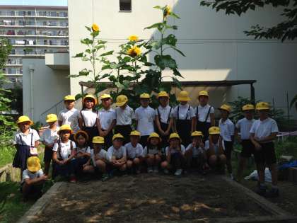 春に植えたヒマワリが、大きく大きく育ち花を咲かせました。久々に見る大きさで子ども達も驚きの声を上げていました。今日で1学期が終わりましたが、子ども達は中学年としての自覚を持ち、新しく始まった教科やいろいろな行事に進んで取り組んできました。まるで、このヒマワリのように大きく成長したと思います。