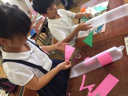 今、生活科の「うごくうごくわたしのおもちゃ」で、おもちゃ作りをしています。