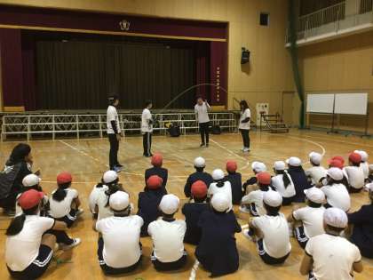 11月14日(火)にダブルダッチの授業があり、特別に関西ダブルダッチ協会から講師の先生が来られました。最初は「縄がこわい」「こんなの跳べない」と言っていた子どもたちでしたが、コツを見つけると「おもしろい!」「もっと跳びたい!」と自分の順番が待ち遠しい様子でした。五年生のみんなにとってダブルダッチの楽しさを体験する一時間となりましたね。これから寒さの厳しい季節です。今日の授業をきっかけにダブルダッチの練習をして体を動かしていこう!