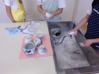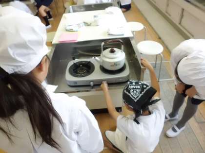 ガス栓の開閉、点火つまみの回し方、火の調節、湯呑への注ぎ方、片付けの仕方など、たくさんのことを学習できました。