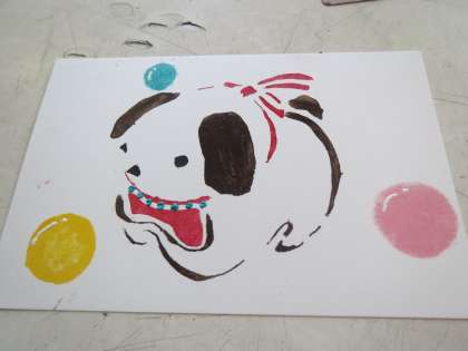 先日、地域のボランティアの方々にステンシル(干支カード作り)を教えてもらいました。かたおき・いろぬり・仕上げの仕方を最初から最後まで丁寧に教えて頂いたことで、みんなそれぞれが納得のいく可愛らしい作品を作ることができました。出来上がった際には、みんな自分で作ったカードを自慢げに見せ合いっこする姿を見て、とても微笑ましくなりました。地域の方々、楽しい活動をどうもありがとうございました!!!