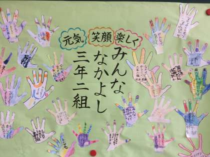 3年生が始まって、約1週間が過ぎました。それぞれの学級目標も決まり、いろいろなことにチャレンジしています。新しく始まった社会科では町の様子を詳しく調べ、理科では周りの生き物を詳しく観察していきます。今年から、外国語と道徳も教科化されます。子ども達と共に、たくさんの新しい学習・経験・体験を通して心も体も大きく成長していきたいと思います。1年間、よろしくお願いします。