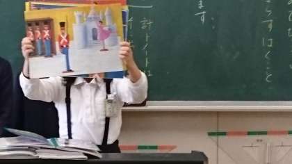 図書委員会の活動の様子です。写真は、図書室開放の放送、低学年への読み聞かせの様子です。