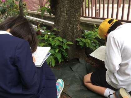 4年生では先週、理科の学習で「サクラの観察」をしました。例年以上に桜の開花が早く、学校の桜にはすでに瑞々しい若葉が茂っています。
