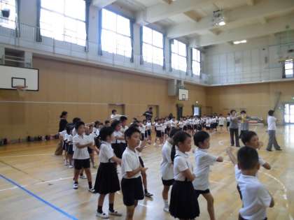 7月17日に地域の方たちに盆踊りを教えていただきました。はじめに「ドラえもん音頭」を踊り、次に「ドンパン節」、それから「淀川音頭」を教えていただきました。子どもたちはリズムに合わせて踊り、よくできるようになったとほめていただくこともできました。今年の夏の盆踊りでは上手く踊れるといいですね。