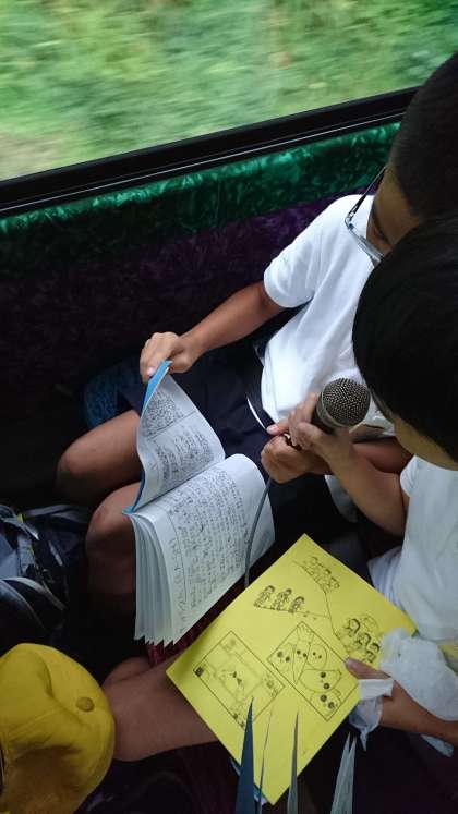バスの中では、子ども達が手作りした「歌集」を見ながら、仲良く歌を歌い、とても楽しく過ごしていました。