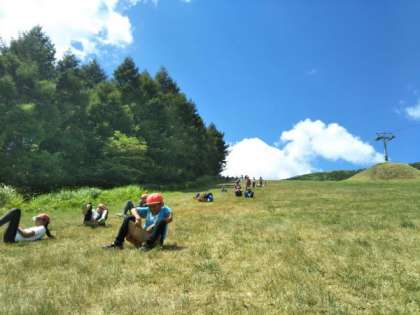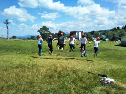 また芝滑りでは、ソリのように滑るのはもちろんのこと、スノーボードのように立って上手に滑る子どももたくさんいました。大自然の中ではしゃぐ子ども達は、普段よりも笑顔が光って見えました。