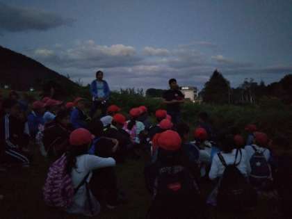 宿舎から15分ほど歩いて星空観察に行きました。写真屋さんは天体観測にとても詳しく、夏の大三角形や北斗七星、火星や金星など、たくさんの輝く星を教えてくださいました。「なんか動いてる!ユーホーやー!」「飛行機やろー!」と、子ども達を引きつけた「動く光」の正体は、人工衛星でした。