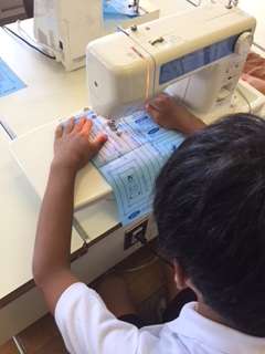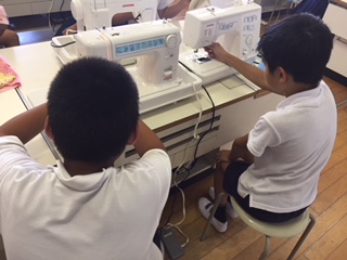 家庭科では、ミシンを使う学習に入りました。ミシンの名称や使い方の学習をしたあと、実際にから縫いをしました。手順通りに安全に取り組むことができました。これから、ミシンを使って、ナップサックを作ります。出来上がりが楽しみです。