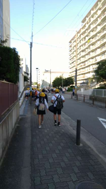6年生が修学旅行に出発しました。さわやかな秋晴れです。欠席者はなく全員が参加できました。