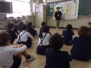 前回は、「アルファベット」と「曜日」の学習をしましたが、今回は「曜日」の復習をしてから「動物の鳴き声」について学習しました。いろいろな動物の鳴き声をジェスチャーをつけながら真似して発音しました。私たちが思っている鳴き声とはずいぶん違うことにびっくりしていました。