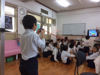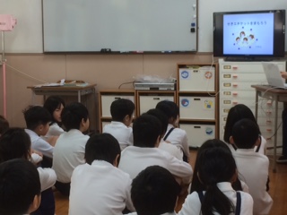 学校でインフルエンザを広めないように、くしゃみが出そうになったら、ティッシュやハンカチ、服の袖で口を覆うようにすること。手で覆ったときは手洗いも忘れずにすること。マスクをするだけでなく、周りに広めないことも「せきエチケット」だということをウイルスの模型を使って分かりやすく学習することができました。