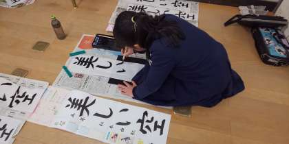 日本の年中行事の一つの書き初めをしました。いつもとは違う半紙だったのでバランスをとりながら書くのが難しかったようです。