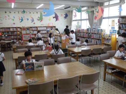 9月11日(木)3限目、3年1組は図書の授業です。まず自分の読みたい本を探します。そして読みたい本が見つかった児童は、先生のところで貸し出しのチェックを受けてから、座席で静かに本を読んでいました。