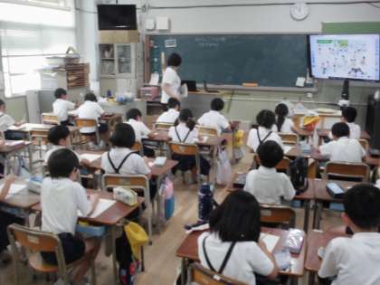 9月25日(木)2限目、2年1組は生活科の授業です。昨日行った1年生とのおもちゃ交流会についてを思い出し、プリントに書きました。その後、交流会の様子を発表したときには、「1年生のわからない子にちゃんと教えてあげたよ」など2年生らしい発表がありました。