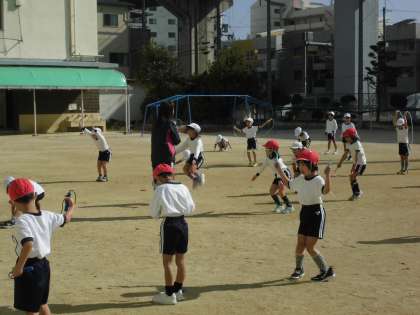 11月21日(金)4限目、1年生は体育の授業です。最初に腕を上げたり、膝をまげたりと準備体操をしっかりしてから、なわとびの練習をしました。両足とび、片足とびなどいろんな飛び方を練習しました。最初はうまく飛べなかった児童も、練習を重ねていく内に1回が2回、2回が3回と飛べるようになっていました。来週のなわとびタイムが楽しみです。