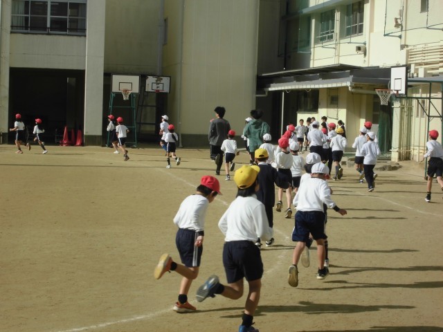 1月13日(火)~29日(木)はかけ足タイム週間です。1・3・5年グループと2・4・6年グループが隔日で運動場のトラックを走ります。かけ足タイムは、走るペースを一定にしながら決められた時間を走ることを目指します。2月に行う持久走記録会で記録を伸ばせるようにがんばっています。児童は自分のペースを守りながら8分間いっしょうけんめい走っています。