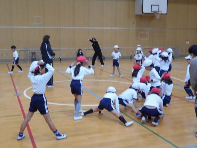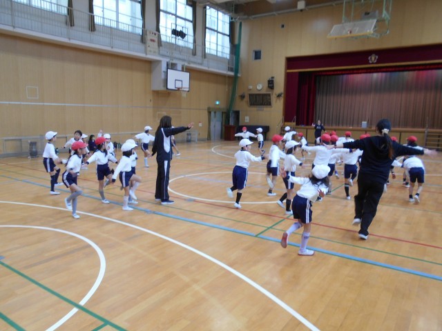 2月5日(木)3限目、1年生は出前授業で外部講師の先生よりダンスを習いました。最初はストップゲームで大きなポーズや動物のポーズを真似ました。そして、腕を回したりジャンプをした後、ジャングルの動物のポーズを真似ました。最後にいろいろな動物のポーズを組み合わせると簡単なダンスが出来上がりました。児童は音楽に合わせて体を大きく動かし楽しくダンスを踊ることが出来ました。