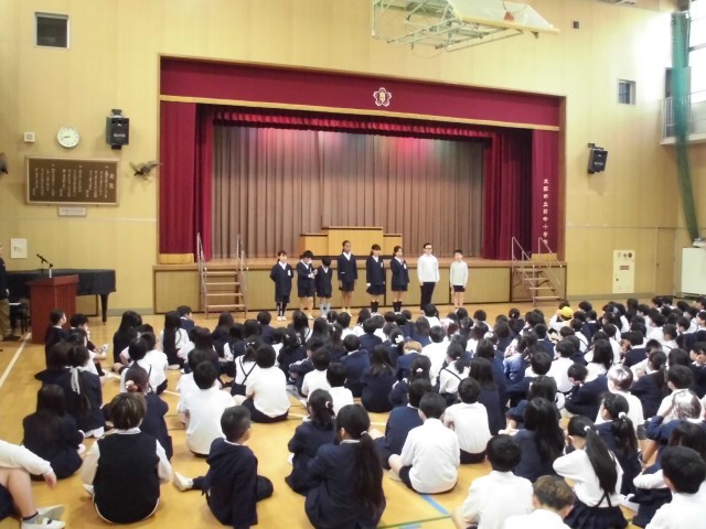 4月20日(月)、児童朝会がありました。児童朝会では、最初に校長先生より地域の見守り隊の皆さんの紹介があり、全児童より「ありがとうございます」とお礼の言葉を言いました。また、見守り隊代表の方より「登下校時に児童の皆さんの安全をしっかりと見守っていますので、出会った時はきちんとあいさつしましょう」とお話がありました。そして、運営委員会の児童より運営委員会についての説明がありました。最後に先生より「先週は朝しっかりとあいさつが出来ていましたが、8時25分を過ぎてから登校する児童が少しいました。これからは25分までに登校するようにしましょう」と話がありました。