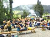 予定よりも早く、無事に登山から全員帰ってきました。子ども達は、険しい道のりも暑...