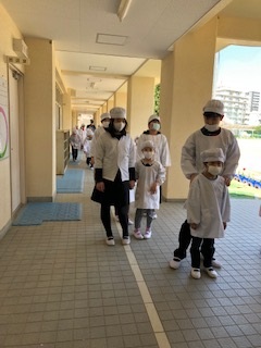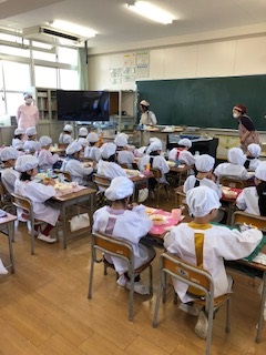 1年生は、どんな給食かなという楽しみと、全部食べられるかなという不安もあったと思います。でも、「いただきます。」と食べ始めると「おいし〜い。」「おかわりしてもいい?」という声もあり、みんなで楽しく食べました。