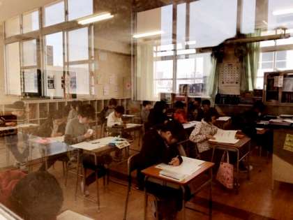 今日は、1時間目から3時間目まで、6年生が全国学力学習状況調査に挑戦しました。写真は、2時間目に算数のテストを受けているところです。単純な計算問題は姿を消し、問題文を読んで、何について聞かれているのか、手掛かりとなるヒントはどれかを理解することがまず必要になります。みんな、物音も立てず、真剣にテストに取り組んでいました。