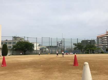 さわやかな初夏の運動場で、1年生が30メートル走の練習をしています。体育の係の児童が前に出て、準備体操をおこなうなど、もうすっかり小学生になりました。