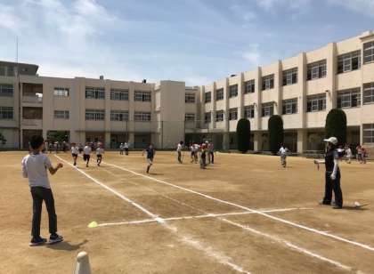 スポーツチャレンジ週間も2日目となりました。30メートル走も的当てもみんな真剣です。