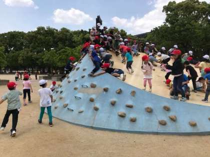 お弁当を食べ終えて、しばらく自由に遊びます。たくさんの小学生が遠足に来ていてごった返していますが、仲よく遊んでいます。もうすぐ帰途に着きます。