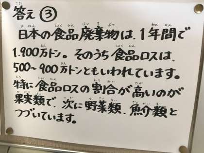 お待たせしました、昨日の食育クイズの答を発表します。