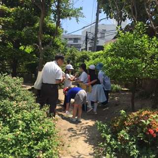 大阪市環境局が実施している「生き物調査」の出前授業がありました。十三小学校にはどんな生き物がいるのか、3つの班に分かれて調査しました。